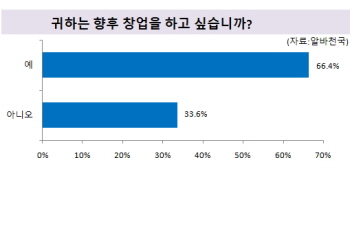 창업에 대한관심이 커지고 있는 가운데 구직자 3명 중 2명은 향후 창업을 희망하는 것으로 나타났다.
