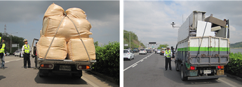 자동차전용도로에서 화물차 적재함에 덮개를 씌우지 않고 운행하다 낙하물이 발생하면 도로미관을 해치는 것은 물론 차량 소통에 방해가 될 뿐만 아니라 뒤차의 안전을 위협하여 교통사고를 유발하는 사례로 연결 될 수 있기 때문이다. 중점 단속 구간은 △ 올림픽대로(공항방향) 염창IC~강서지역, 김포매립지, △ 강변북로(난지방향) 가양대교, 성수대교 하부~은평, 수색지역, △ 북부간선도로(구리방향) 신내IC~신내동, 구리시계, △ 동부간선로(상계방향) 당현4교~상계, 의정부지역, △ 동부간선로(성수방향) 마들지하차도 등 평소 화물차에 의한 낙하물이 많이 발생하는 구간으로 경찰과 합동으로 단속을 실시할 예정이다. 도로교통법상 적재함 덮개를 설치하지 않을 경우 20만원 이하의 벌금을 내야하며 특히 폐기물 투기 차량은 관련 조례에 따라 300~700만원의 과태료가 부과될 수 있다. 경찰은 이번 합동단속 기간에 적발되면 관련법 (도로교통법 제39조 및 동법시행령 제93조)에 따라 행정조치로 범칙금 4~5만원을 부과할 예정이다. 한편 2013년 6월까지 도시고속도로 13곳 176km구간에서 발생한 낙하물(쓰레기 등)은 철제류, 토사, 파지, 마대, 비닐, 목재, 폐타이어, 페트병 등 169톤에 이르며 총1,180회(하루 6.5회)로 공단 직원이 현장에 출동하여 도로통행에 지장이 없도록 낙하물을 처리했다. 이효재 서울시설공단 도로환경처장은 “고속으로 운행하는 자동차전용도로에서 화물이 떨어지면 차량 소통에 방해가 될 뿐만 아니라 뒤차의 안전을 위협하므로 단속에 앞서 운전자와 운수사업자의 자발적인 협조와 주의를 부탁드린다”고 말했다.