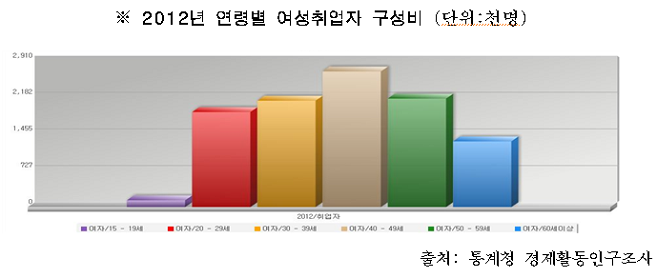 40~50대 여성들의 고용률이 계속 높아지고 있지만, 나이에 대한 편견, 정보 부족, 경력 부족 등으로 ‘좋은 일자리’에 취업한 경우는 극소수에 불과하며, 대다수가 경력과는 무관한 일자리에 재취업하는 것으로 나타났다.