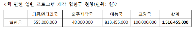 구체적으로 정부의 핵정책 홍보방송으로 KBS가 지난 5년간 받은 협찬금은 일반프로그램 협찬금이 15억 원, 캠페인 및 공익광고 17억1천6백만 원으로 총 32억3천2백여 만 원이다. 특히, 2012년에는 1억원을 받고 다큐멘터리국에서 서울 핵안보정상 특집프로그램을 구성하여 5번에 걸쳐 방송했다.