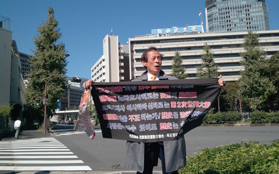 시민단체 활빈단 홍정식 대표와 애국국민운동대연합 오천도 대표가 지난 19일 오전 일왕 황거, 노다 일본총리관저, 자민당 당사등 도쿄 중심부에서 일본의 독도침탈에 대해 항의하는 시위를 펼쳤다.