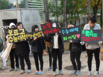 정문을 향하는 수험생 딸이 “뒤도 돌아보지 않고 들어간다”며 아쉬움을 나타내는 고영애씨(50세, 신길동)에게 딸을 위한 응원을 부탁하자 언제 그랬냐는 듯이 밝은 표정으로 “아자! 아자! 민지”를 외쳤다.