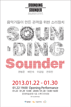 이번 공연과 전시 발표회는 오는 22일(수)부터 29일(수)까지 문래예술공장 1층 스튜디오M30 열리며 입장료는 무료이다. 배인숙은 2012년부터 비슷한 관심사를 가지고 있는 예술가 그룹 “업사이클 라운드업”에서 활동해 오고있으며 Sounding Sounder에서는 사운드 아트, 음악, 미디어 아트 분야에서 활발한 활동을 보이고 있는 권병준, 이강일, 전유진과 누구나 연주할 수 있는 관객(Sounder)들을 위한 악기, 소리 장치를 공연과 전시로 발표한다. *일시 : 01.22.(수)~01.29.(수) 13:00 ~ 20:00 / 01.30.(목) 13:00 ~ 16:00 *오프닝 퍼포먼스 : 01.22.(수) 19:00 *장소: 문래예술공장 1층 스튜디오M30 *문의: 02-2676-4333 *관람료: 무료