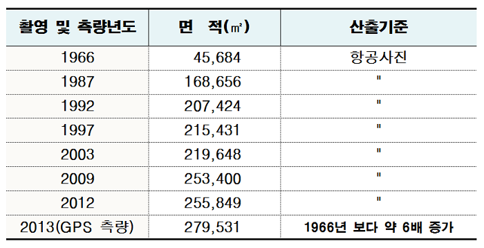 밤섬은 현재 윗밤섬과 아래밤섬으로 나뉜다. 대부분의 면적 증가는 폭파 전 밤섬이 있었던 현재의 아래밤섬 부분인 것으로 확인됐다. 현재 윗밤섬은 영등포구에서, 아래밤섬은 마포구에서 관할하고 있다. 특히, 서울시는 2013년엔 처음으로 최첨단 GPS 측량을 도입해 산출 결과에 정확성을 더했다. 이번 조사는 그동안 외부 전문기관에 의뢰하던 학술용역의 일부를 공무원들이 직접 연구팀을 꾸려 직접 수행하는 ‘공무원 직접수행 학술연구’의 결과다. 연구팀은 서울시 토지관리과 공간측량팀 3명 등 총 4명으로 구성됐다. 서울시는 이번 연구 과정에서 찾은 늘어난 면적의 토지와 지적공부에 누락된 토지에 대해 해당 구청에 통보해 관련 행정문서(지적공부) 정비를 요청한 상태다. 정비 결과에 따라 한강 밤섬 생태경관보전지역에 대한 변경 고시 절차도 추진할 계획이라고 시는 밝혔다. 남대현 서울시 토지관리과장은 “밤섬은 세계적으로도 보기 드문 대도시 내 철새도래지로 도시발전과 환경보전이 공존하는 습지로 발전 가능성이 무궁무진한 곳”이라며 “이번 연구를 통해 구축된 자료는 앞으로 밤섬을 어떤 식으로 관리해나갈 것인지를 고민할 때 소중한 기초자료로 쓰이게 될 것”이라고 말했다.