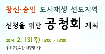 서울시는 창신·숭인지역 도시재생선도구역 신청을 위한 주민공청회를 2월 13일(목) 15시 종로구 구민회관(종로구 창신동 222-8번지 소재) 2층 대강당에서 개최한다고 밝혔다. 이번 주민공청회는 서울시에서 창신·숭인지역을 국가지원의 도시재생선도지역(근린재생형) 신청하기에 앞서, 지역주민들과 전문가들의 다양한 의견을 청취하기 위해 개최하는 것이다. 도시재생 선도지역이 되면 근린재생형 사업의 경우, 1개 지역당 200억원(국비 100억, 시비 100억)이 지원되며, 사업기간은 올해부터 2017년까지 4년간 시행될 예정이다. 이번 공청회는 ‘창신․숭인 도시재생 선도구역 구상(안)’에 대한 종로구청 도시관리국장의 주제발표, 전문가․주민대표의 토론이 있은 후 주민질의 응답의 순서로 진행될 예정이다. 서울시는 공청회에 앞서 도시재생 선도사업에 대한 주민들의 이해를 돕고 주민들의 의견을 듣기 위한 주민설명회를 4차례에 걸쳐 개최한 바 있으며, 주민공청회 이후에 서울시 시의회 의견청취를 거쳐 ‘14.3.14까지 국토교통부에 도시재생 선도지역 신청을 추진한다는 계획이다. 이건기 서울시 주택정책실장은 “창신․숭인지역은 한양도성․안양암 등 풍부한 역사자원 방치, 의류봉제 등 도심 산업의 쇠퇴, 뉴타운 해제과정에서 발생한 갈등 등이 산재되어 있어 도시재생 선도사업이 특히 필요한 지역으로, 낙후된 이 지역이 선도지역으로 거듭나면 일자리 창출 및 지역경제 활성화, 역사문화ㆍ관광명소화, 주거환경개선과 지역공동체 활성화를 통해 활력 넘치고 매력적인 도시가 될 것으로 기대한다.” 라고 말했다. 유철호 종로구 도시관리국장은 “그 동안 창신․숭인동은 뉴타운지정으로 8년동안 주민을 위해 아무것도 투자할 수가 없어 총체적으로 낙후되어, 도시재생 선도지역을 통한 자생적 성장기반 확충, 기초생활 인프라 및 공공․복지․편의․공원․녹지시설 등을 집중 투자가 절실하다며, 주민들과 함께 선도지역으로 선정될 수 있도록 온 힘을 대해 노력하고 있으며, 창신․숭인지역 도시재생은 주민이 제안하고, 주민이 선정하며, 주민이 참여하는 방식이 원칙으로, 주민이 원하는 사업이 실현될 것이다.”라고 말했다.