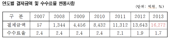 지난 2007년 카드결제 도입 첫 해 결제율은 3.5%에 불과했으나 해마다 지속적으로 늘어나, 7년이 지난 현재 58.8%로 17배나 증가해 현금 결제를 앞질렀다.