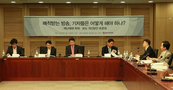 13일(화) 국회 의원회관 제2세미나실에서 한국방송기자협회 주최로 열린 “배척받는 방송, 기자들은 어떻게 해야 하나?”토론회에서 참석자들이 재난재해 취재·보도 개선방안에 대해 토론을 벌이고 있다.