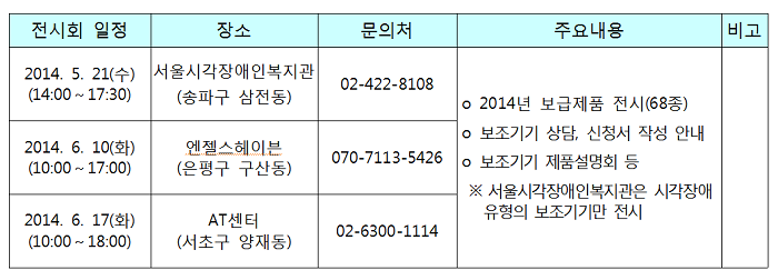 서울시, 장애인 맞춤 정보통신보조기기 제품 지원 서울시는 장애없는 디지털 세상을 위하여 장애인들에게 컴퓨터, 인터넷 등을 통한 정보접근 및 정보이용에 도움을 주는 정보통신보조기기를 보급한다. 이에 5월 15일(목)부터 7월 18일(월)까지 지원신청을 접수받는다고 밝혔다.