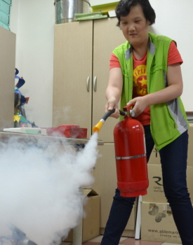 이날 교육은 중증장애인생산품시설에 종사하는 직원을 대상으로 화재발생시 ▲초기대응요령 및 대피훈련 ▲ 비상벨 체험 ▲비상구 중요성 ▲ 연기 소화기 체험 ▲ 연기대피훈련 등 체험위주의 교육을 실시하여 재난발생시 신속하게 대피할 수 있도록 안전대피를 중점적으로 교육을 실시했다.