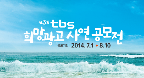 2011년 첫 선을 보이며 무료 CF 제작과 방송 지원을 통해 많은 분들에게 희망을 드렷던 ‘tbs 희망광고 사연공모전’이 오는 7월 1일(화)부터 8월 10일(일)까지 스무 명의 세 번째 주인공들을 찾는다.