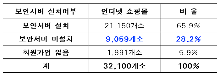 온라인쇼핑몰 10곳 중 3곳, ‘개인정보 암호화 안돼’ 서울시전자상거래센터가 발표한 인터넷쇼핑몰 개인정보관리실태 모니터링 결과 온라인쇼핑몰 10곳 중 3곳, ‘개인정보 암호화 안 되어 있는 것으로 나타났다.