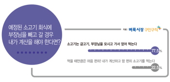 신문, 인터넷, 모바일로 구인정보를 제공하는 벼룩시장구인구직이 최근 자사 소셜네트워크를 방문한 남녀 직장인 552명을 대상으로 직장생활에서 직장상사와 맞닥뜨리는 여러 가지 순간의 선택에 대해 설문조사를 진행했다. 그 결과, 함께 하는 시간의 정도와 상황에 따라 상사와의 공존방법이 다른 것으로 나타났다. 바쁜 출근길 지각 직전, 엘리베이터 정말 싫은 상사가 타고 있을 때 어떻게 하겠냐는 질문에는 응답자의 66.7%가 ‘조금만 참고 상사와 함께 엘리베이터를 탄다’로 말했다. 33.3%는 ‘다리를 희생하고 평화를 얻겠다. 계단으로 걸어간다’고 답했다. 아무리 싫은 상사라 할지라도 엘리베이터에서의 잠깐 동안 함께 하는 것은 참을 수 있다는 의견이 대부분이었다. 반면 외근을 함께 나가자는 상사, 외근을 가면 쌓여 있는 업무를 안 해도 되는 상황이라면 어떻게 하겠느냐는 질문에는 73.9%가 ‘된장 피하려다 똥 밟기는 싫다. 회사에 남아 쌓여 있는 업무를 처리한다’고 답했으며 26.1%는 ‘귀찮은 업무보다 진상 떠는 상사 맞춰주면 외근을 나가는 게 낫다’고 답했다. 처리해야 할 업무량이 지나치게 많아도 상사와 장시간 함께 보내는 것 보다 남아서 업무를 처리하는 게 낫다고 판단한 것으로 보인다. 다들 외근 나가고 점심시간 사무실에 날 괴롭히는 상사와 둘 밖에 없다면 어떻게 하겠냐는 질문에는 64.5%가 ‘밥 먹으면서 체하기 싫다, 속이 안 좋다며 식사를 거부한다’고 답했으며 35.5%는 ‘짜증나고 싫어도 밥심으로 버텨야 하는 오후를 생각해서 같이 식사하러 간다’고 답했다. 상사와 함께 밥 먹고 소화가 안 되는 것 보다 굶는 것이 낫다고 말한 직장인이었지만 단 둘이 아닌 상황에서 메뉴가 소고기고 계산을 상사가 한다면 어떤 반응을 보일까? 예정된 소고기 회식에 상사를 빼고 갈 경우 내가 계산을 해야 하는 상황이라면 어떻게 하겠냐는 질문에는 77.5%가 ‘소고기는 금고기다. 상사를 모시고 가서 얻어 먹는다’고 말했으며 22.5%만 ‘먹을 때 만큼은 마음 편히, 내가 계산하고 맘 편히 소고기를 먹는다’고 답했다. 메뉴나 상사의 음식값 계산 여부에 따라 직장인의 소화력은 조절이 가능 한 것으로 보인다. 벼룩시장구인구직 이동주 본부장은 “직장에서의 인간관계는 누구나 힘들어 한다. 특히 힘든 상사가 있다면 직장생활의 어려움은 배가 되지만 막상 힘들게 하는 상사가 없어지더라도 하루아침에 직장생활이 편해지지는 않을 것이다” 라며 “상사를 무조건 싫어하고 감정적으로 대하기 보다는 티 내지 않는 적절한 처세로 공존을 모색한다면 직장생활이 더 편해질 것이다” 라고 충고했다.