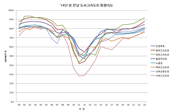 24시간 빈틈없는 대중교통 서비스 제공 서울시가 올해 추석 연휴와 패턴이 같았던 2011년 추석 연휴 도시고속도로 평균 속도 추이를 지난해 추석과 비교한 결과, 이번 추석은 귀성객이 상대적으로 분산돼 전반적으로 여유로운 귀성길이 될 것으로 내다봤다.