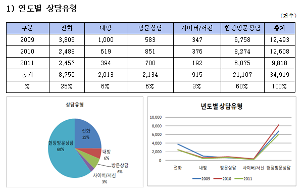 2003년 개소한 ‘서울시 다시함께상담센터’는 성매매 예방 및 인권보호를 목적으로 성매매 피해자 상담과 법률, 의료, 심리, 자활 지원, 성매매 예방 캠페인 등을 실시하고 있다. ‘서울시 다시함께상담센터’ 는 지난 3년간 총 34,919건의 상담을 진행했으며 심리지원 6,052건, 법률지원 5,747건, 의료지원 1,183건 등 성매매 피해자의 심리적 안정 및 인권보호를 위한 다양한 지원을 실시해왔다. 또한 21,107건의 현장상담을 실시하여 성매매 여성의 탈성매매를 유도할 수 있도록 적극 지원했다.