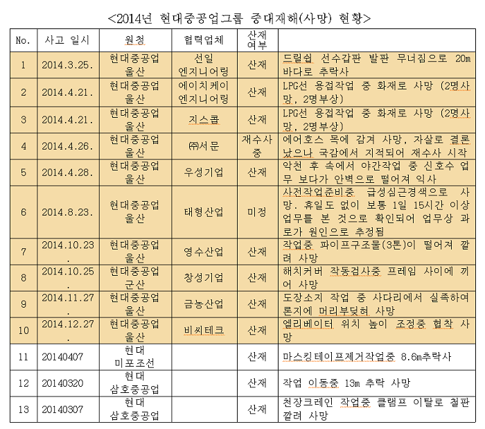 지난 27일 현대중공업에서 또 한 명의 사내하청 노동자가 사망했다. 올해에만 9건, 10명의 노동자가 사망했다. 고용노동부의 특별근로 감독, 안전진단명령, 국정감사에서의 지적에도 불구하고 중대재해가 멈추지 않고 있다. 이에 대해 이인영 의원은 “고용노동부의 보다 강도 높은 조치가 조속히 이루어져야 한다."고 밝혔다. 이인영 의원에 따르면, 올해 조선업에서는 중대재해사고로 30여 명이 사망한 것으로 집계되었으며, 이 중 13명이 현대중공업그룹(현대중공업, 현대미포조선, 현대삼호중공업) 내에서 사망한 것으로 나타났다. 특히 현대중공업에서 9건, 10명의 사망자가 발생한 것으로 나타났다.