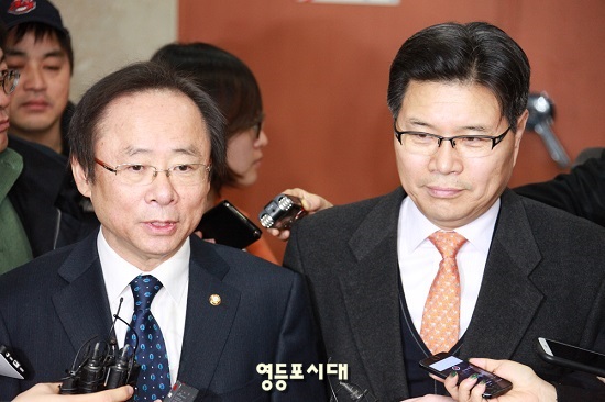 새누리당 원내대표 후보 이주영 의원(사진 왼쪽)과 정책위의장 후보 홍문종 의원(사진 오른쪽)은 1일(일) 오전 새누리당 당사에서 기자회견을 열고 원내대표 지도부 운영에 대한 비전을 밝혔다.