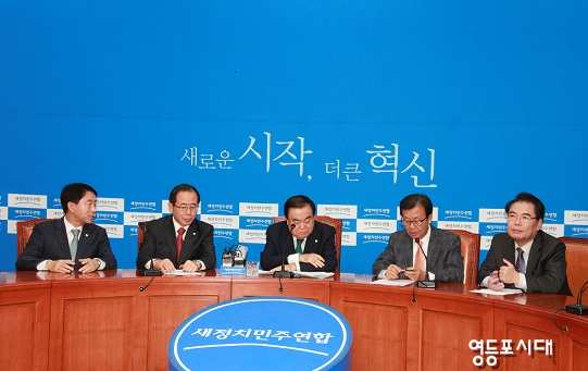 새정치민주연합 문희상 비대위원장(사진 가운데)은 5일 비상대책위원장으로서 마지막 기자간담회 갖고 “좌고우면하지 않고 오직 당의 재건과 안정, 혁신 실천을 위해 힘차게 내달려 왔다”며 그동안의 비대위 활동에 대한 소회를 밝혔다.