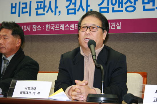 대통령 당선이후 최우선적으로 고위공직자특별수사청 신설해야 사법정의국민연대(이하 사법연대)등 시민단체들은 15일 오전 한국프레스센터에서 가진 기자회견을 통해 고위공직자특별수사청 신설 및 김앤장 변호사들에 대한 고발 기자회견을 가졌다. 기자회견 1부행사에서 이적 공동대표는 “대통령보다 더 막강한 권력을 휘두르고 있는게 사법부다. 그들의 기득권에 놀아난다면 아름다운 강토는 더 이상 없다”면서, “이 같은 구조적 모순을 부수기 위해서는 같이 싸워야 한다. 이 땅의 정의를 위해서 같이 싸워나가는 저희가 되겠다. 더욱 전진해서 함께 싸워서 승리하자”고 강조했다. 사법연대는 이날 발표한 성명서를 통해 "사법정의국민연대 모태인 공권력피해구조연맹은 지난 1998년 6월 26일 창립한 이래 지금까지 비리 판, 검사도 처벌할 법률을 만들어야 공권력의 법집행이 공정하게 할수 있다는 취지하에 이러한 법률적 제도개혁을 주장해 왔다"고 설명했다. 그 같은 결과 "제18대 국회에서는 고위공직자비리수사처를 신설하기 위해 사법제도개혁특별위원회를 만들어 활동을 하면서 국회에 상정은 되었으나 마지막에 무산되고 말았다"면서, "이번 대선후보들은 대통령이 된다면 가장 먼저 고위공직자비리 수사처를 신설해 법집행자들 부터 바로 세워야 올바른 국가로 성장할수 있다"고 주장했다.
