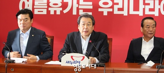 이병석 의원이 이같은 발언에 대해 김무성 대표(사진 가운데)은 “지난 대통령 선거 때 대구경북 투표율 80%목표, 대구·경북도민들의 성원으로 그 어려운 목표가 달성되었다”고 말하고 “은혜에 보답하는 길은 내년선거에서 과반의석을 확보해 대통령선거에 반드시 승리해 정권재창출 하는 것이다라고 생각해왔다.”며 “반드시 과반수이상의 의석을 얻기 위한 절박감에서 고육지책으로 말한 것으로 이해해주기 바란다.”라고 해명했다.