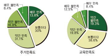 당산1동·양평1동·양평2동, 교통·환경 분야 만족도 가장 높아 영등포구민은 교통·환경 분야에서 가장 높은 만족도(60.9%)를 보였으며 가장 불만족스러운 분야는 교육 환경 분야(3.18%)인 것으로 조사됐다. 가장 만족도가 높은 교통 환경 분야에 이어 ▶주거(44.9%) ▶치안 (40.4%) ▶사회 안전(35.6%) ▶의료복지(33.2%) 순이며, 불만족스러운 분야로는 교육 환경 분야에 이어 사회 안전 체감도(27.5%) ▶의료복지(26.2%) ▶주거(25.2%) ▶치안(23.2%) ▶ 교통(13.4%) 순으로 그 뒤를 이었다. ■조사대상 : 만 19세 이상 영등포구 유권자 ■조사방법 : 여론조사시스템에 의한 전화조사(ARS) ■표본추출 : RDD(무작위 임의걸기)방식에 의한 무작위추출 ■표본오차 : 95% 신뢰수준에서 최대허용오차 ± 3.1% ■조사기간 : 2015년 07월 11일~12일(2일간) ■조사기관 : (주)리서치DNA ■유효표본 : 1,015명 교통 환경에 대한 만족도는 여성(61.1%)과 남성 간에(60.8%) 큰 차이가 없는 것으로 조사되었으며 불만족스럽다는 응답은 남성이(18.7%) 여성(8.3%)보다 두 배 이상 높았다 만족한다는 응답을 연령대별로 분석해 보면 19세에서~ 39세까지가(71.2%) 가장 높게 나타났다. 반면 40대(49.9%)가 가장 만족하지 못하고 있으며 50대(53.5%)가 그 뒤를 이었다. 60대에서는 다시 만족도가(58.6%) 상승했다. 지역별로 살펴보면 사통팔달의 교통망이 구축된 당산1동·양평1동·양평2동(74.8%) 주민의 만족도가 가장 높고, 신길4동·5동·7동은(48.6%) 다소 낮은 것으로 조사됐다. 만족도가 가장 낮고(29.6%) 불만족(25.2%)이 가장 높게 나타난 교육환경 분야에서는 남성(35.8%)이 여성(23.5%)보다 만족도가 높게 나타났다. 이는 아이들 교육현장과 밀착해 있는 여성의 현실적인 답변이 영향을 미친 것으로 보인다. 연령별로는 19세~39세까지가(40.4%) 가장 높은 만족도를 보였으며 40대(18.8)에서 가장 낮은 것으로 조사됐다. 이 같은 결과는 자녀들이 상급학교 진학을 앞둔 40대 부모들의 교육 열정이 반영된 것으로 분석된다. 역시 교통 환경 만족도에 이어 교육환경 분야에서도 50대에서(20.8%) 약간 높아지는 추세를 보이다가 60대에서(27.2) 만족한다는 의견이 다시 높게 나타난 것은 눈여겨봐야 할 대목이다. 이번 조사에서는 생활 수준이 높을수록 교육환경에 대한 만족도가 높게 나타났으며 생활 수준이 낮을수록 낮게 나타나 생활 수준이 교육에 영향을 미치고 있는 것으로 분석된다. 영등포구에 오래 살수록 주거환경에 대한 불만 늘어 주거환경에 대한 만족도를 묻자 응답자의 44.0%가 만족, 30.3%가 보통이라고 답했다. 불만족스럽다는 응답은 25.2%로 조사됐다. 영등포구에 거주한 기간이 짧을수록 주거환경에 대한 만족도가 높았으며 여성보다 남성이 더 만족하는 것으로 나타났다. 1년 미만의 거주자 만족도가(93.2%) 압도적으로 높게 나타났지만 7년 이상 거주자의 만족도는 40.8%까지 떨어지는 것으로 조사됐다. 한편 영등포구에 오래 살수록 주거환경에 대한 불만이 늘어간다는 조사 결과에 대해 자치단체와 정치인들은 곱씹어봐야 할 부분이다. 19세에서 39세까지에서 가장 높은 만족도(62.3%)를, 50대에서 가장 낮은(30.1%) 만족도를 보이다가 다시 60대에서(37.2%) 만족하는 경향이 높아지는 것으로 조사됐다. 의료, 보육, 노후 등 복지시설 만족도, 남녀 모두 보통 영등포구의 의료, 보육, 노후 등 복지시설과 정책에 대해 어느 정도 만족하느냐고 물은 의료복지 분야에서는 40.6%가 보통이라고 답했으며 만족한다는 응답은 33.2%, 불만족스럽다는 응답은 26.2%로 조사됐다. 남성과 여성 모두에서 불만족보다는 만족하다는 응답이 높게 나온 점은 눈여겨 볼만한 대목이다. 연령대별로 분석해 보면 만족하다는 의견은 19~39세까지가 가장 높았으며 40대에서 가장 낮은 것으로 조사됐다. 특기할 만한 사항은 미혼자들의 만족도(48.8%)가 배우자가 있는 기혼자들(25.8%)보다 훨씬 높게 나타났다는 점이다. 이번 조사에서 생활 수준이 높은 상위 층(54.5%)은 만족도가 높았지만, 하위층이 느끼는 만족도(25.8%)는 상위층의 절반에도 미치지 못하는 것으로 조사돼 상·하위층의 간의 빈부의 격차가 만족도 조사에도 영향을 미친것으로 분석된다. 영등포구 치안, 매우 불만족 6.6% 영등포 구민은 치안에 대해 매우 만족(11.4%)하기보다는 약간의 만족(29.0%)을 느끼는 것으로 조사됐다. 응답자의 36.4%는 보통이라고 답했으며 매우 불만족하다는 응답은 6.6% 나타났다. 세대별로 살펴보면 19세에서 39세에서 만족한다는 응답이 높았으며 여성보다 남성이 더 만족하는 것으로 조사됐다. 치안만족도 조사 역시 생활 수준이 높을수록 만족한다(상위층 68.2%)는 응답이 하위층(32.7%) 보다 두 배 이상 높게 나타났다. 우리 사회 매우 안전하다 6.7% 영등포 구민 중 35.6%는 우리 사회가 안전하다고 느끼고 있으며 불안하다고 느끼는 구민은 27.5%로 나타났다. 안전하다고 느끼는 구민 중 매우 안전하다가 6.7%, 대체로 안전하다 28.9%로 나타났으며 불안하다고 느끼는 구민 중 매우 불안하다가 7.5%, 대체로 불안하다 20.0%로 나타났다. 안전하다는 응답은 남성이(42.6%) 여성(28.7%)보다 다소 높게 나타났으며 40대(29.1%)에서 가장 안전하지 않다고 생각하는 것으로 조사됐다. 영등포