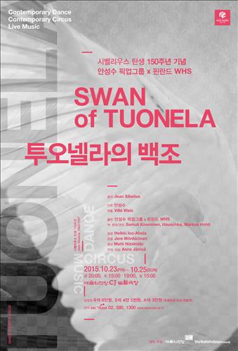 예술의전당은 오는 23∼25일 CJ토월극장에서 시벨리우스의 음악을 현대적 음악과 움직임으로 재해석한 '투오넬라의 백조'를 아시아 초연한다. 핀란드가 낳은 거장 시벨리우스 탄생 150주년을 맞아 핀란드와 한국 예술가들이 공동 창작한 작품이다. 한국에서는 예술의전당과 현대무용단 '안성수 픽업그룹'이, 핀란드에서는 베르카테다스 극장과 현대서커스·시각극 단체 'WHS'가 참여했다. '안성수 픽업그룹'을 이끄는 안무가 안성수, WHS의 창시자 빌레 왈로, 프리페어드 피아노(현이나 해머 옆에 물건 등을 설치해 음향을 변질시키는 피아노) 연주자 하우쉬카, 퍼커셔니스트 사물리 코스미넨, 첼리스트 마커스 호우티 등 5인이 3년간 협업해 완성했다. '투오넬라의 백조'는 황천을 떠도는 흑조의 음울한 분위기를 담은 핀란드 설화를 바탕으로 한 시벨리우스의 동명 교향시를 현대적으로 재해석한 작품이다. 현대무용에 폴댄스, 저글링 등 현대 서커스 요소를 입히고 부채와 마네킹을 비롯한 오브제를 사용한다. 밴드가 무대 위에서 프리페어드 피아노, 전자음향, 첼로, 드럼 등을 동원해 라이브 연주를 한다는 것도 특징이다. 예술의전당은 "핀란드 '시벨리우스 재단'이 관리하는 시벨리우스의 작품은 클래식 연주회 이외의 공연에서는 사용된 적이 없는 것으로 알려져 있다"며 "이번에 재단의 공식 허가를 받아 그의 작품을 처음으로 무용 음악으로 변주해 사용한다"고 설명했다. 한국 공연에 앞서 시벨리우스의 고향인 핀란드 남부 하멘린나의 베르카테다스 극장에서 9월 26일∼10월 3일 세계 초연했다. 관람료는 3만∼6만원. 문의 ☎ 02-580-1300.