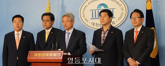 19일 경상북도 국회의원 일동(오른쪽 사진)은 국회에서 기자회견을 열고 ‘경북 선거구 2석 감소안’은 일방적 희생을 강요하는 조치다”며 최근 언론에 보도되고 있는 선거구 획정 안에 대해 강하게 반발했다.