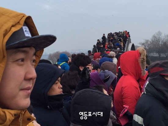 서울의 해 뜨는 시각은 오전 7시 47분, 선유도공원 진입로인 선유교는 일출을 보기 위해 몰려든 인파로 이미 인해 인산인해를 이루고 있다.