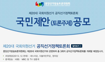 제20대 국회의원선거 공직선거정책토론회 토론주제 등‘국민제안’공모