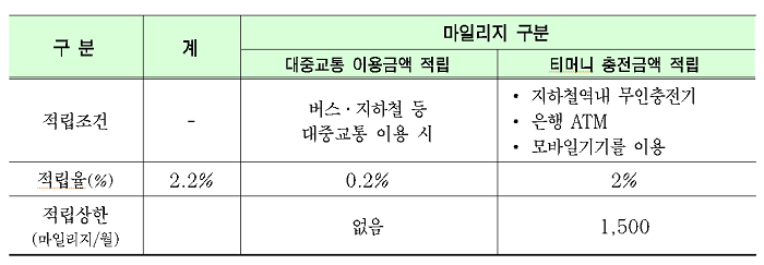 1마일리지=1원 전환, 대중교통․편의점 등 기존 충전금과 동일하게 사용 티머니 마일리지 적립 시범 서비스가 올해부터는 상시 서비스로 계속 제공된다.