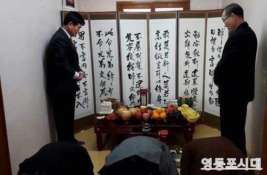 한편 설날인 9일(화) 당산2동 조무현 씨 가족들은 조상들을 위해 정성껏 차린 차례상 앞에서 조상에게 절을 올리고 있다.(오른쪽 사진)