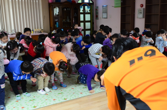 14일(목) 오전 신길동에 있는 하정어린이집 보육교사와 어린이들이 어린이집에서 영등포소방서 대원들로부터 맞춤형 소방안전교육을 받았다.
